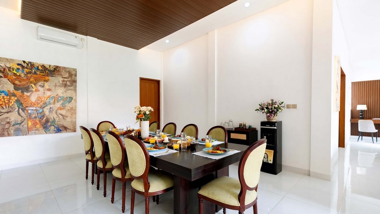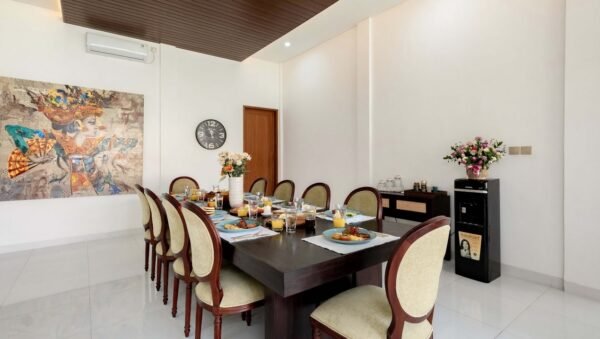 Experience the perfect balance of modern comfort and Balinese charm in this spacious six-bedroom villa. Nestled in the heart of Seminyak, it offers enclosed living areas, bright interiors, and a fully equipped kitchen for culinary enthusiasts.