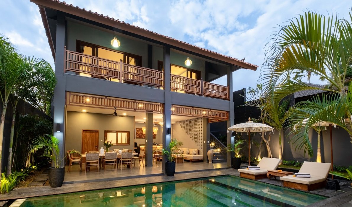 Nestled in a tranquil neighborhood in the heart of Seminyak, this luxurious estate offers a serene retreat for families and groups. Comprising two elegant villas side by side, it accommodates up to 18 guests and is surrounded by lush tropical gardens.