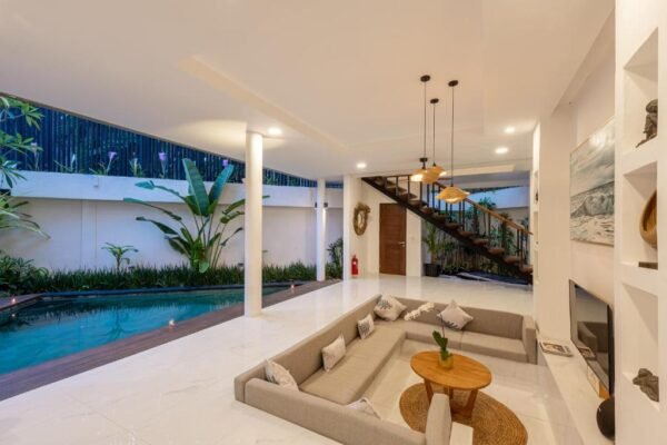 Welcome to Villa 4, a chic three-bedroom villa just steps from the beach—only 150 meters to Double Six and 200 meters to Petitenget Beach. Tucked away behind Seminyak’s vibrant shoreline, this villa offers a peaceful retreat with modern comfort, Balinese charm, and premium service.