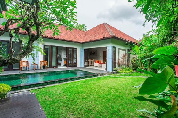 Villa comprises a single-storey grass-thatched roofed pavilions linked by black-washed stone pathways, 6 x 3 meters swimming pool, private garden and terrace. The 1st and 2nd bedrooms are positioned side by side in front of the pool and on the other side is a pavilion that housing the 3rd bedroom.