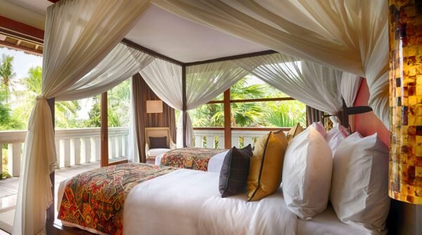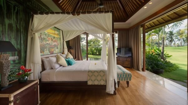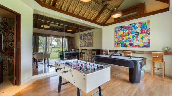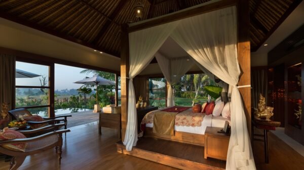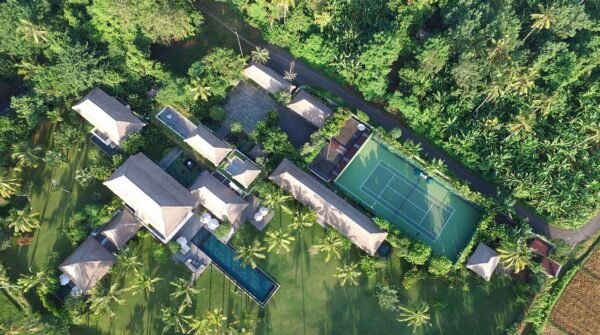 Escape to one of Bali’s most exclusive estates, nestled among sweeping rice terraces in the peaceful village of Kaba Kaba. This luxurious 8-bedroom villa spans over 3 acres, boasting 4 pools, a private tennis court, a home cinema, spa, gym, games room, and a full team of staff including a private chef and butlers.