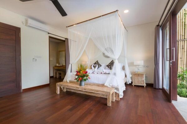 Discover the soul of Ubud in this stunning 4-bedroom villa nestled amid lush rice fields, tropical jungle, and tranquil riverside sounds. From the moment you arrive, the peaceful setting and warm interiors invite you to relax, recharge, and reconnect with nature. Whether you’re here for a honeymoon escape, a cultural family adventure, or a wellness retreat, Villa offers the perfect setting to experience the best of Ubud.
