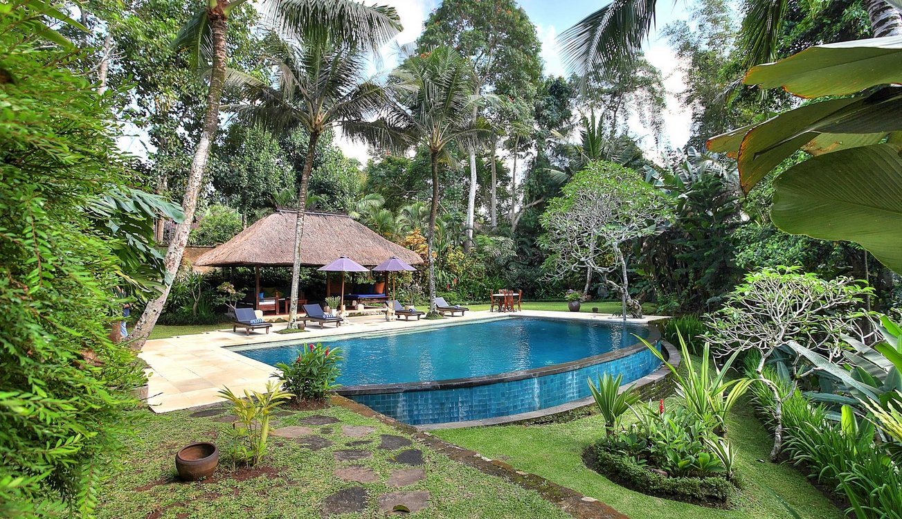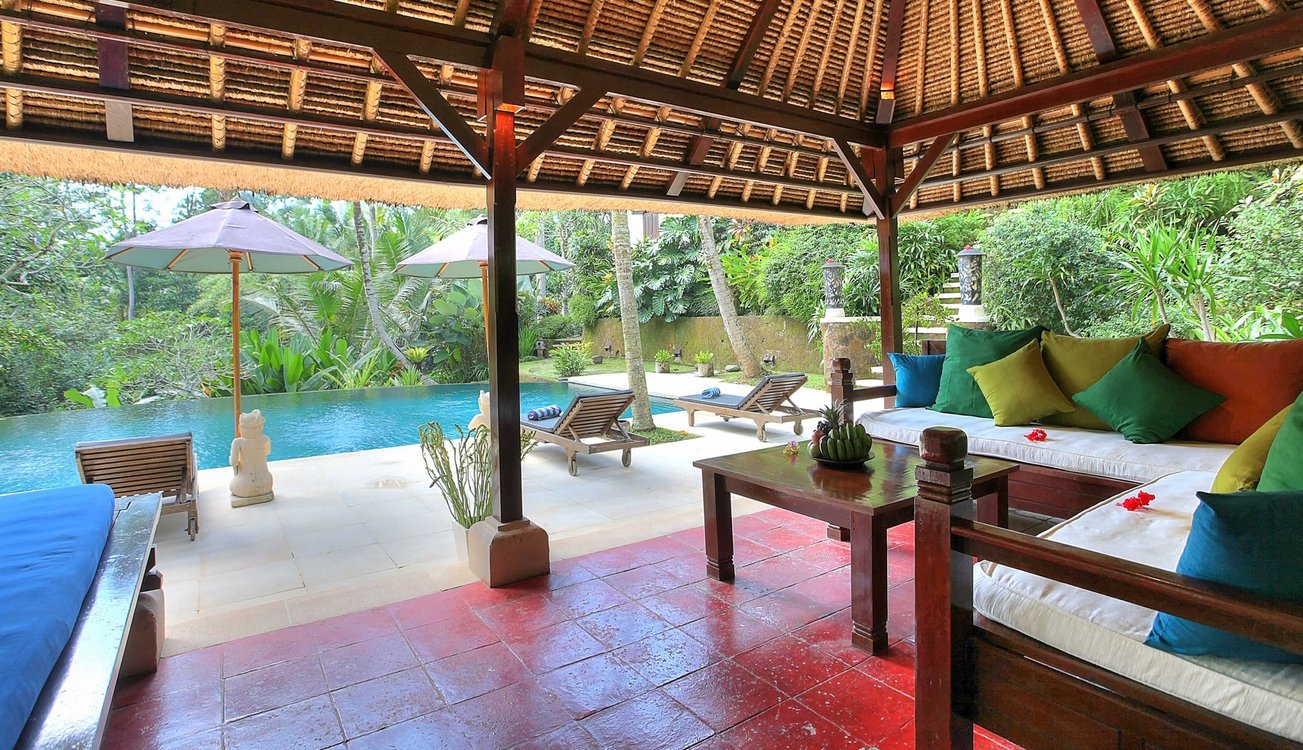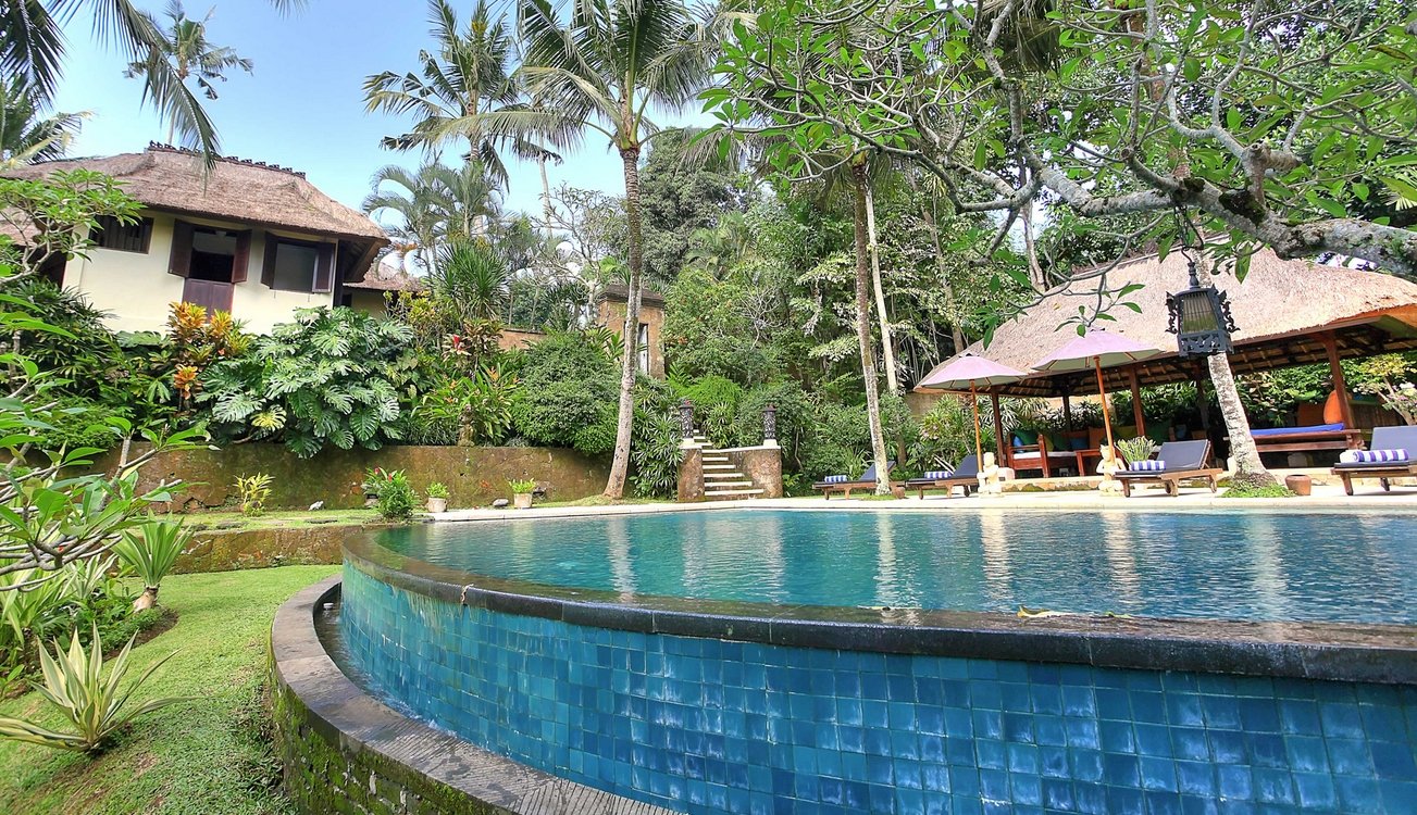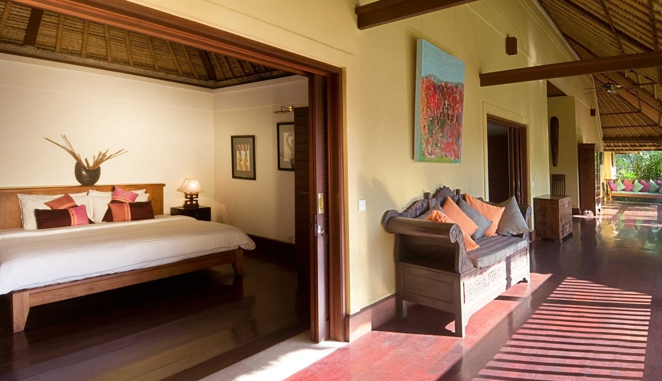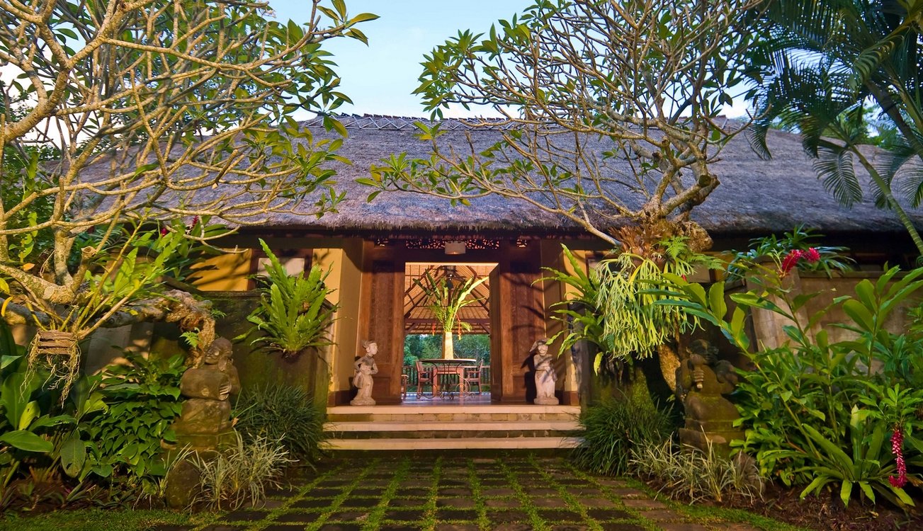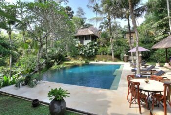Perched high on a river gorge near Bali’s cultural centre, Ubud, The villa’s graceful architecture harmonises with its dramatic tropical environment. Inside, elegant teak furniture is complemented by clean lines, natural colours and local artwork.