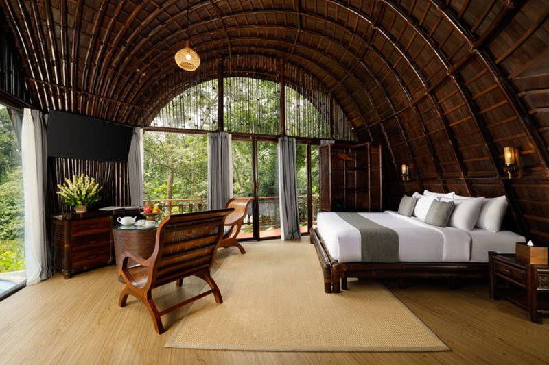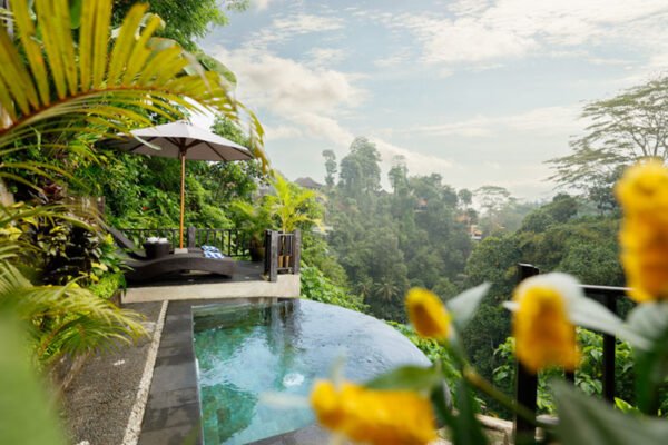 Surrounded by rice fields and tropical forest, this property offers a collection of individually designed villas—each with private pools and open living spaces—to suit both shared and intimate moments.