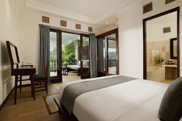 This property sits beside the mystical Petanu River, believed in Balinese legend to have formed from the blood of King Mayadenawa—symbolizing the eternal balance between good and evil. The story lives on in local traditions and the Galungan Festival. Stay here and feel the spirit of old Ubud.