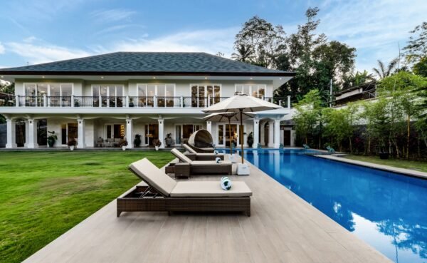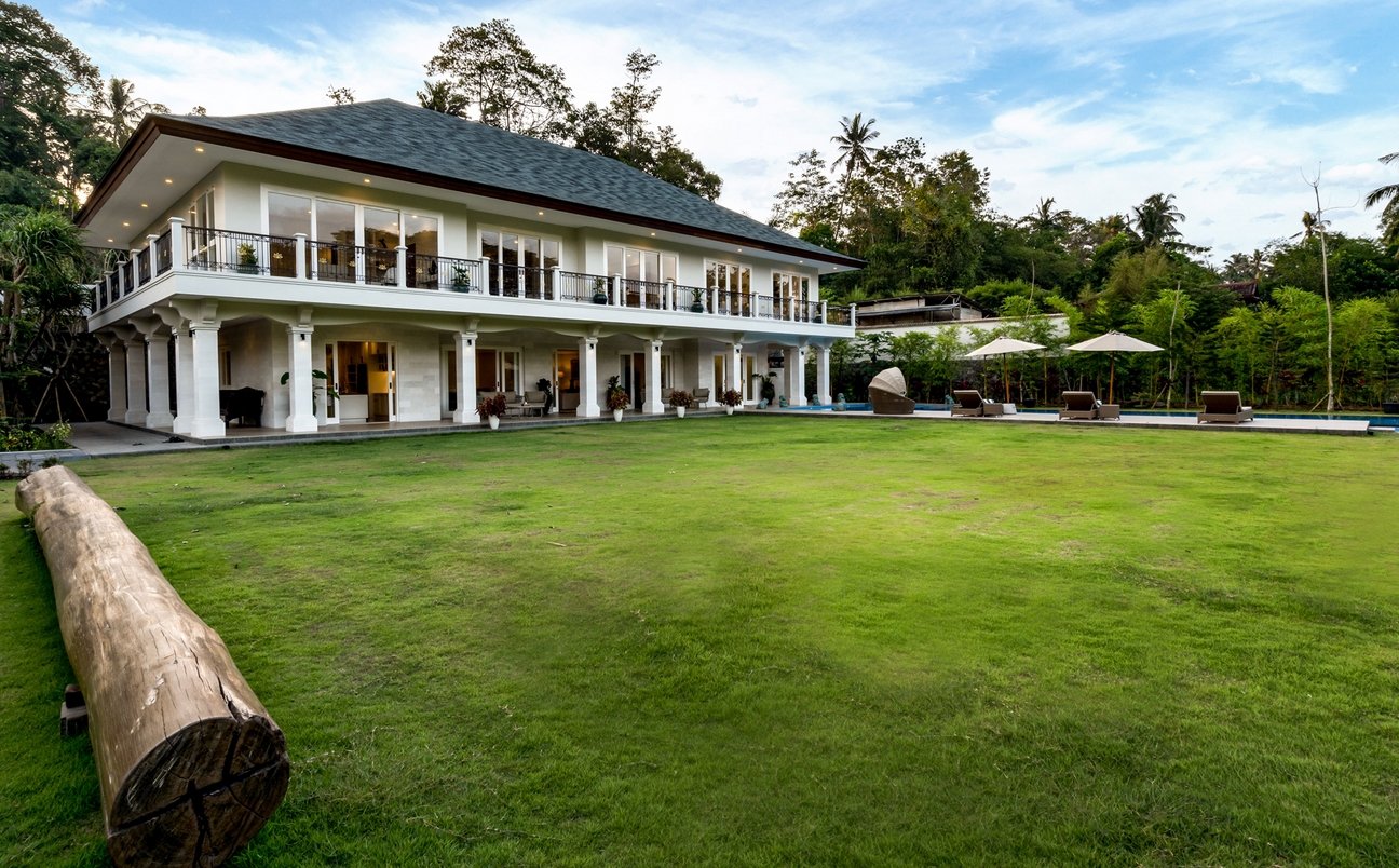 Elegant 5-bedroom villa in a luxury Ubud estate, with a 20m pool, lush gardens, and priceless Balinese antiques. Perfect for families, friends, and weddings—daily breakfast and driver included.
