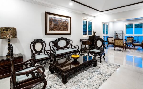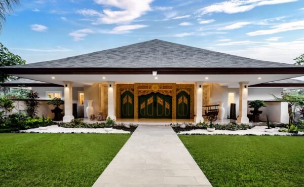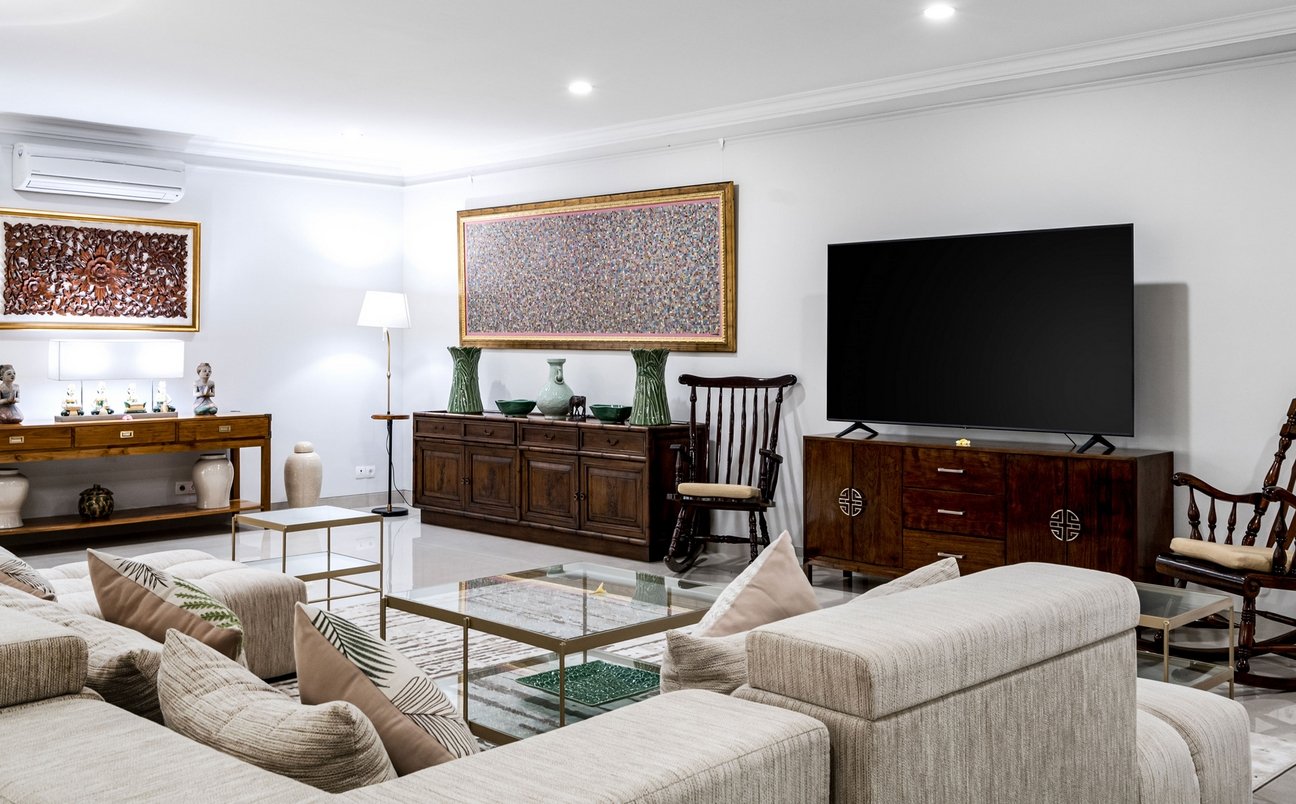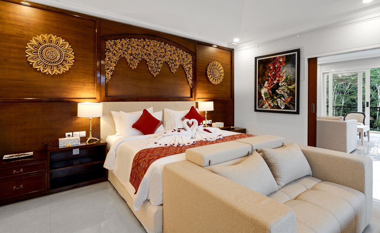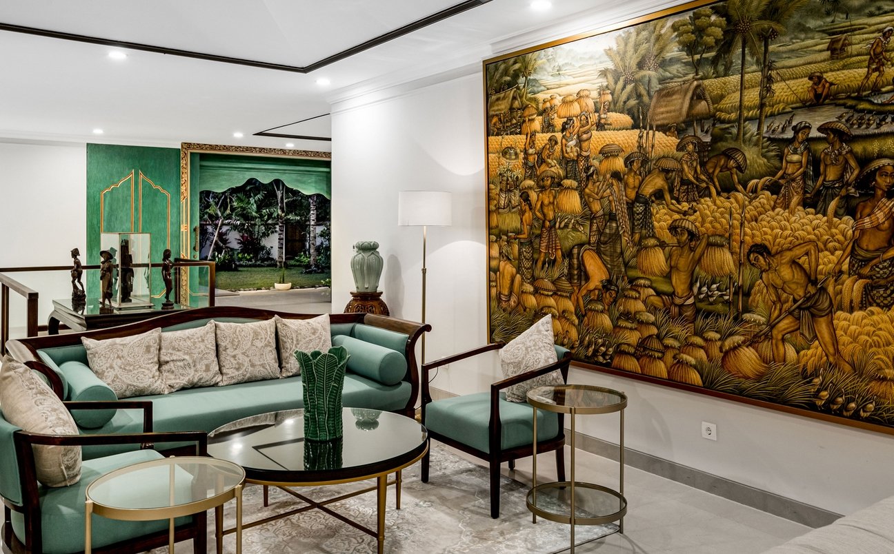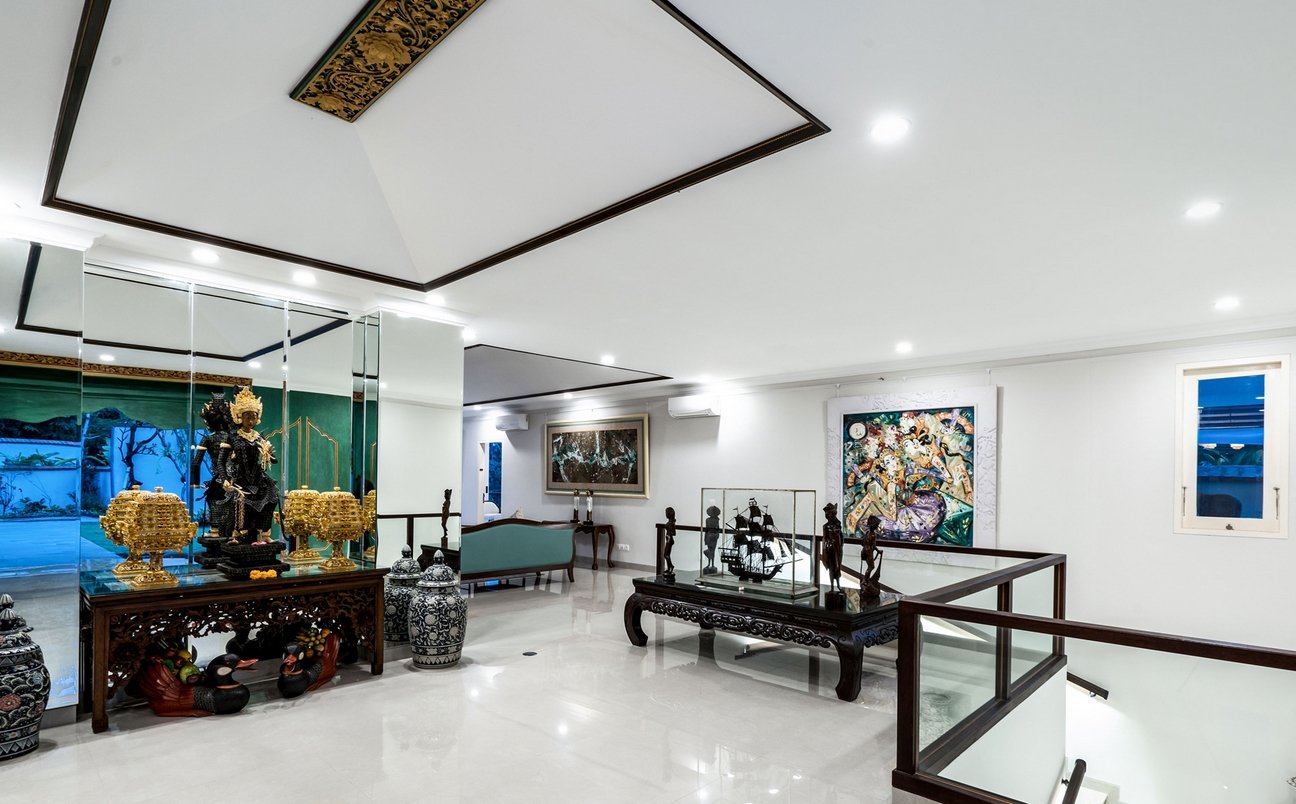 Set within a prestigious Ubud estate, this grand single-pavilion villa welcomes you through ornately carved wooden gates into lush gardens and traditional Balinese architecture. Inside, priceless antiques and family heirlooms—like furniture gifted by a former Indonesian president—blend seamlessly with modern comforts.
