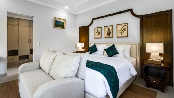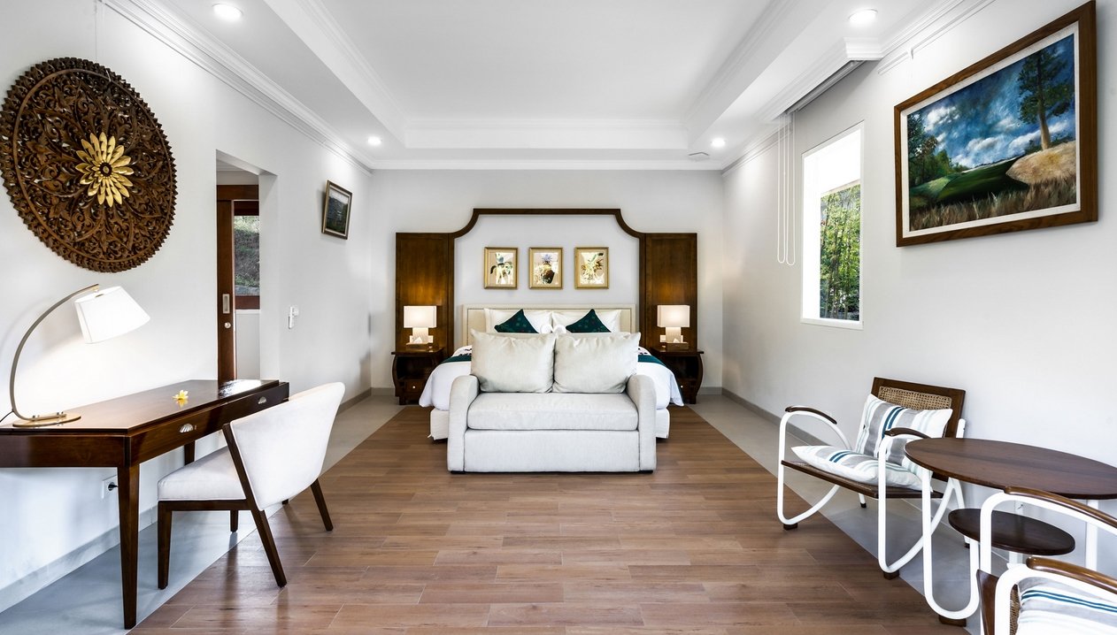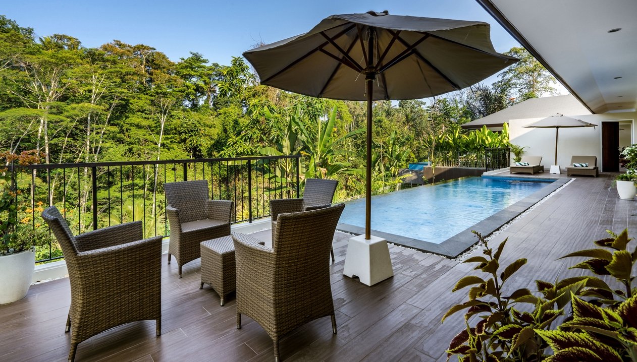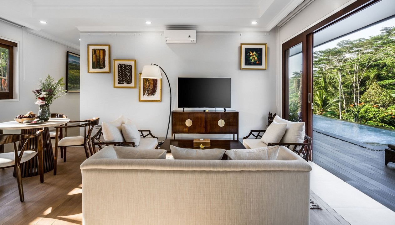 Escape to a stylish hillside retreat in the heart of Ubud. Perfect for families or friends, this two-bedroom villa offers a private infinity pool, modern interiors, and stunning jungle views—all within a luxury estate that blends comfort with nature.