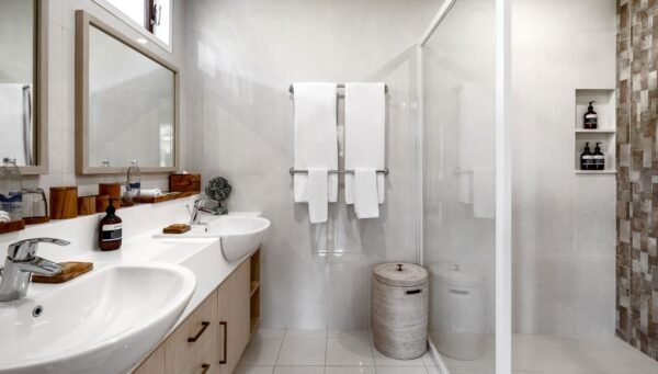 • Guest Bedroom: Twin beds, ensuite with rain shower, pool access