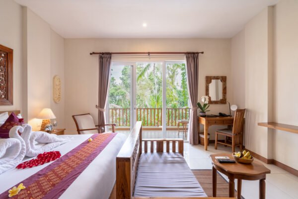 Experience comfort and privacy in a beautifully designed One-Bedroom Suite, ideal for couples or solo travelers seeking a tranquil Ubud escape.