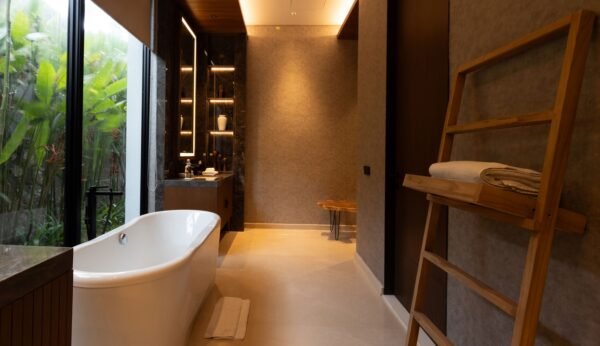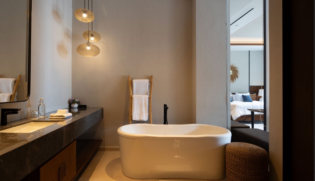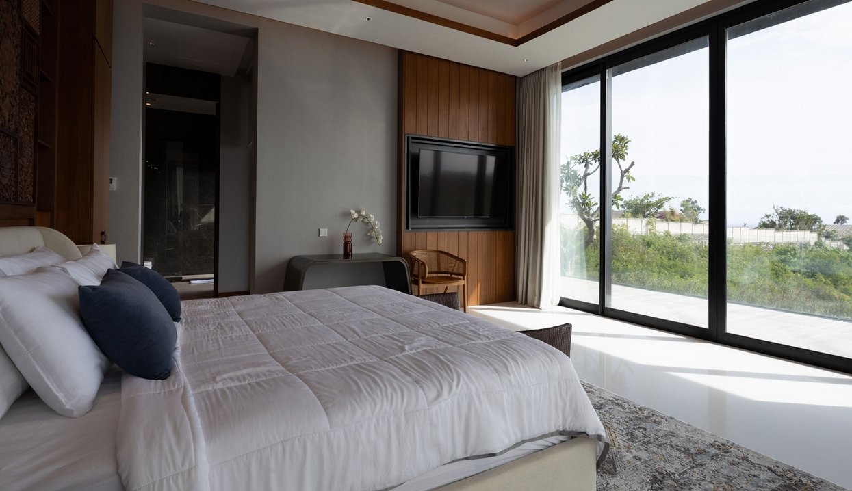 Each bedroom is a sanctuary of its own, with ensuite bathrooms, smart TVs, and sweeping pool or ocean views. Some even feature freestanding tubs framed by tropical gardens or sea vistas. Privacy and comfort are woven into every corner.
