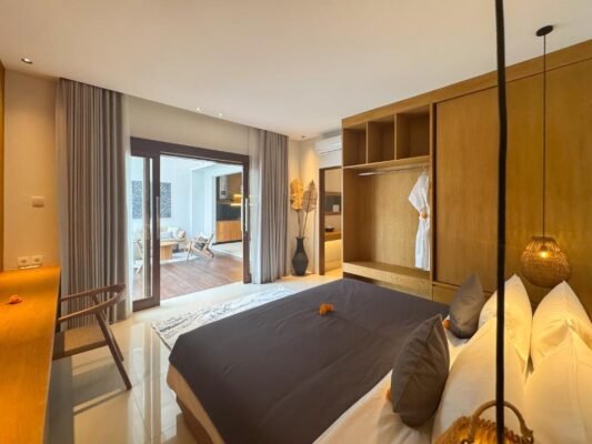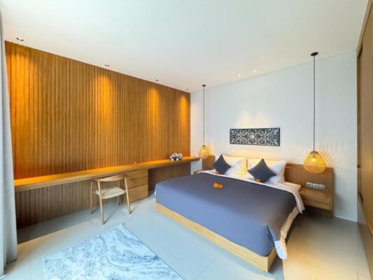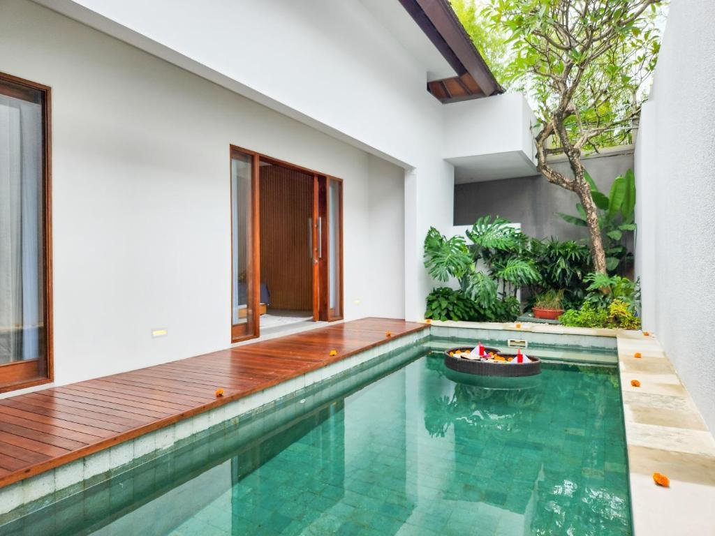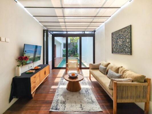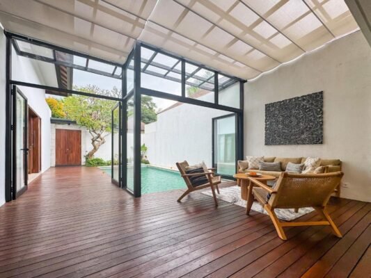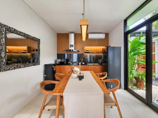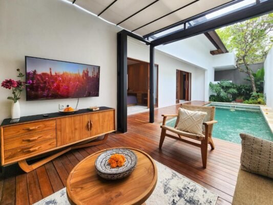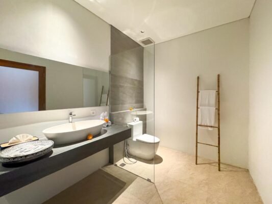 Tucked away in the peaceful neighborhood of Umalas, this stylish two-bedroom villa is perfectly positioned between Seminyak’s vibrant energy and Canggu’s trendy vibe. Here, you’ll enjoy the balance of privacy, comfort, and easy access to Bali’s best cafés, restaurants, beach clubs, and shops.